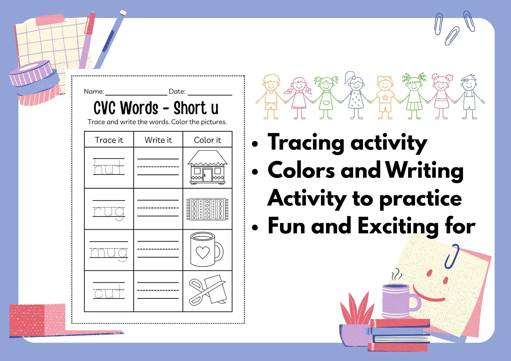 🧠What’s Included: • CVC word tracing worksheets • Fill in the missing letter activities • Picture matching exercises • Reading and writing practice • Fun and engaging pages for early learners