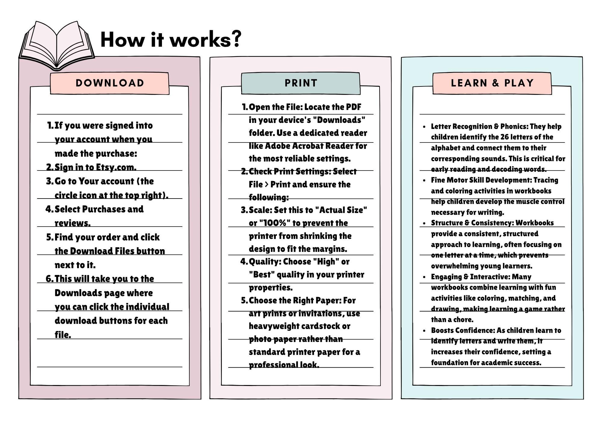 🧠Skills Developed: • Letter recognition • Writing and tracing skills • Phonics basics • Fine motor skills